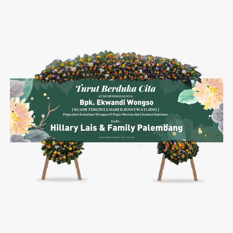 Papan bunga kami didesain dengan indah dan sempurna untuk setiap kesempatan. Desain, ucapan, nama & logo perusahaan dapat disesuaikan untuk acara Anda. Kami dapat mengirimkan papan bunga Anda kepada penerima hanya dalam 2-3 jam sejak pemesanan. Mari tunjukkan perhatian Anda dengan rangkaian bunga spesial kami yang indah.